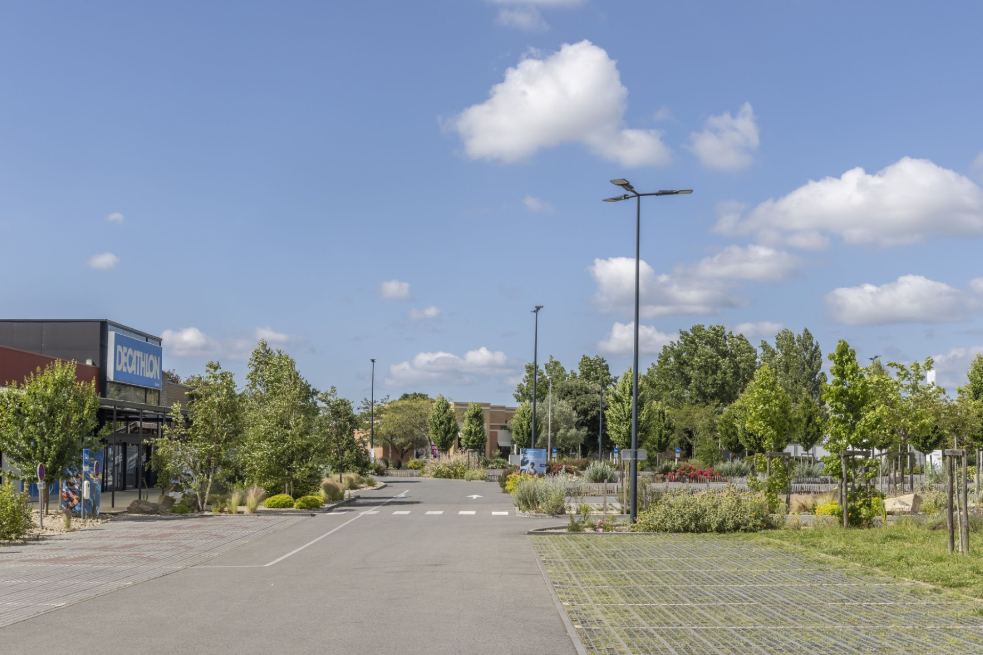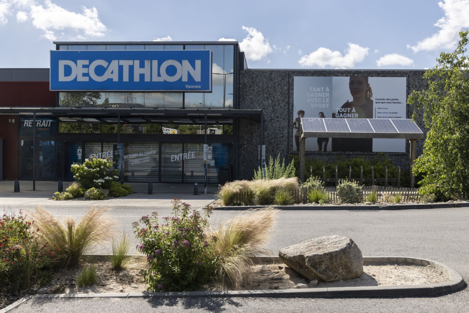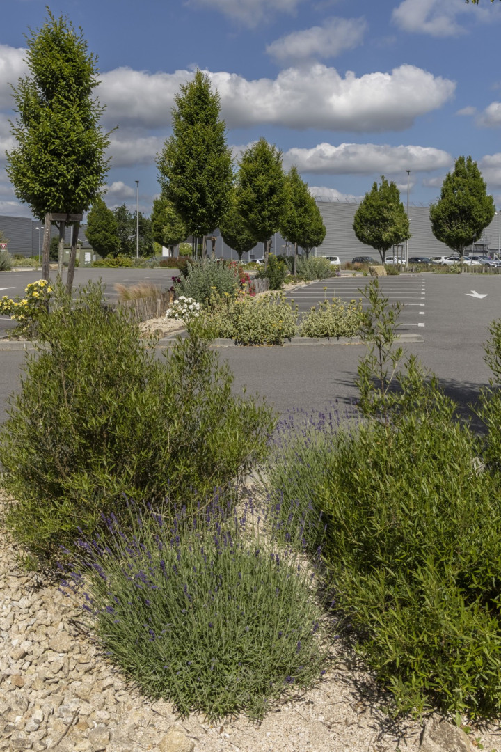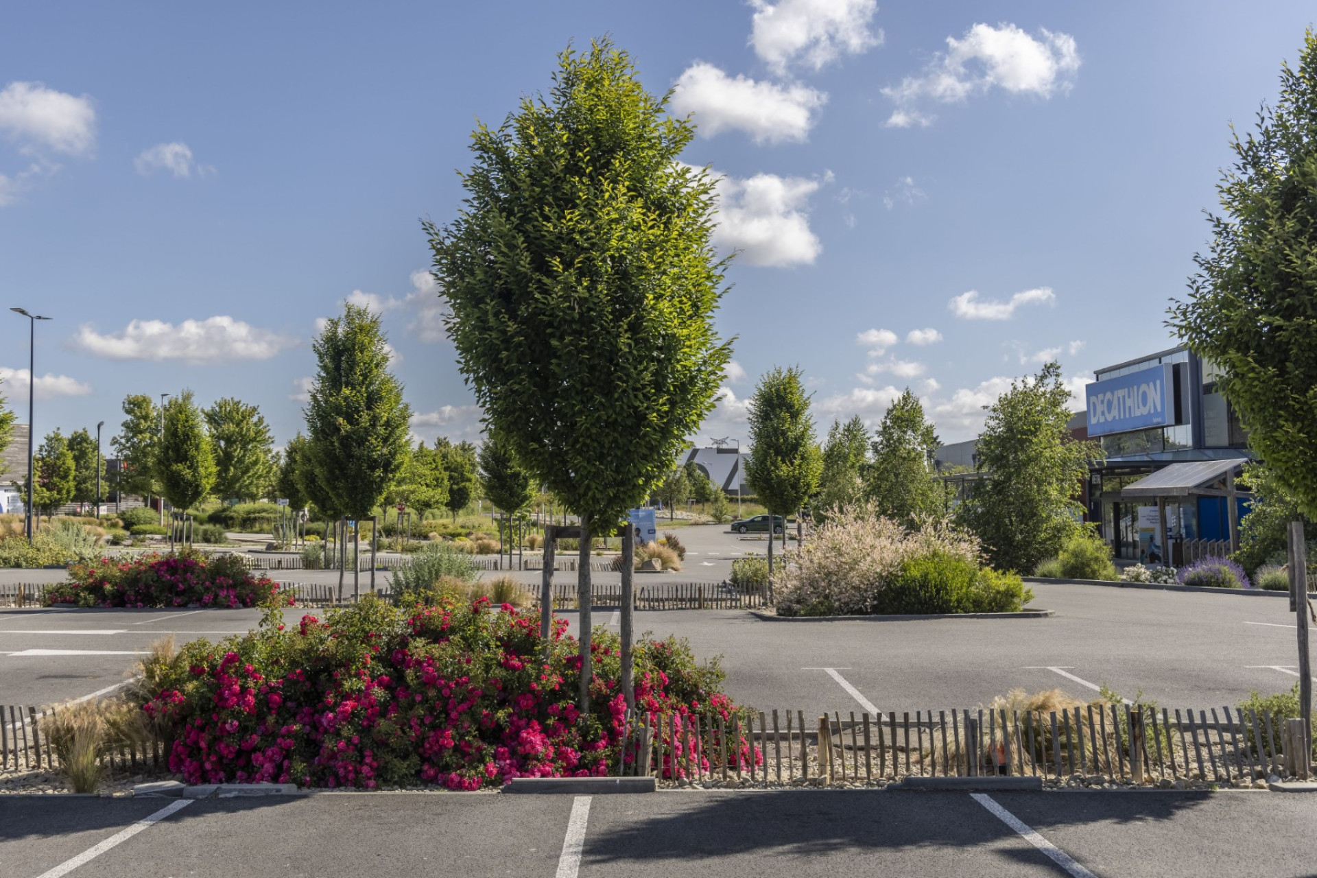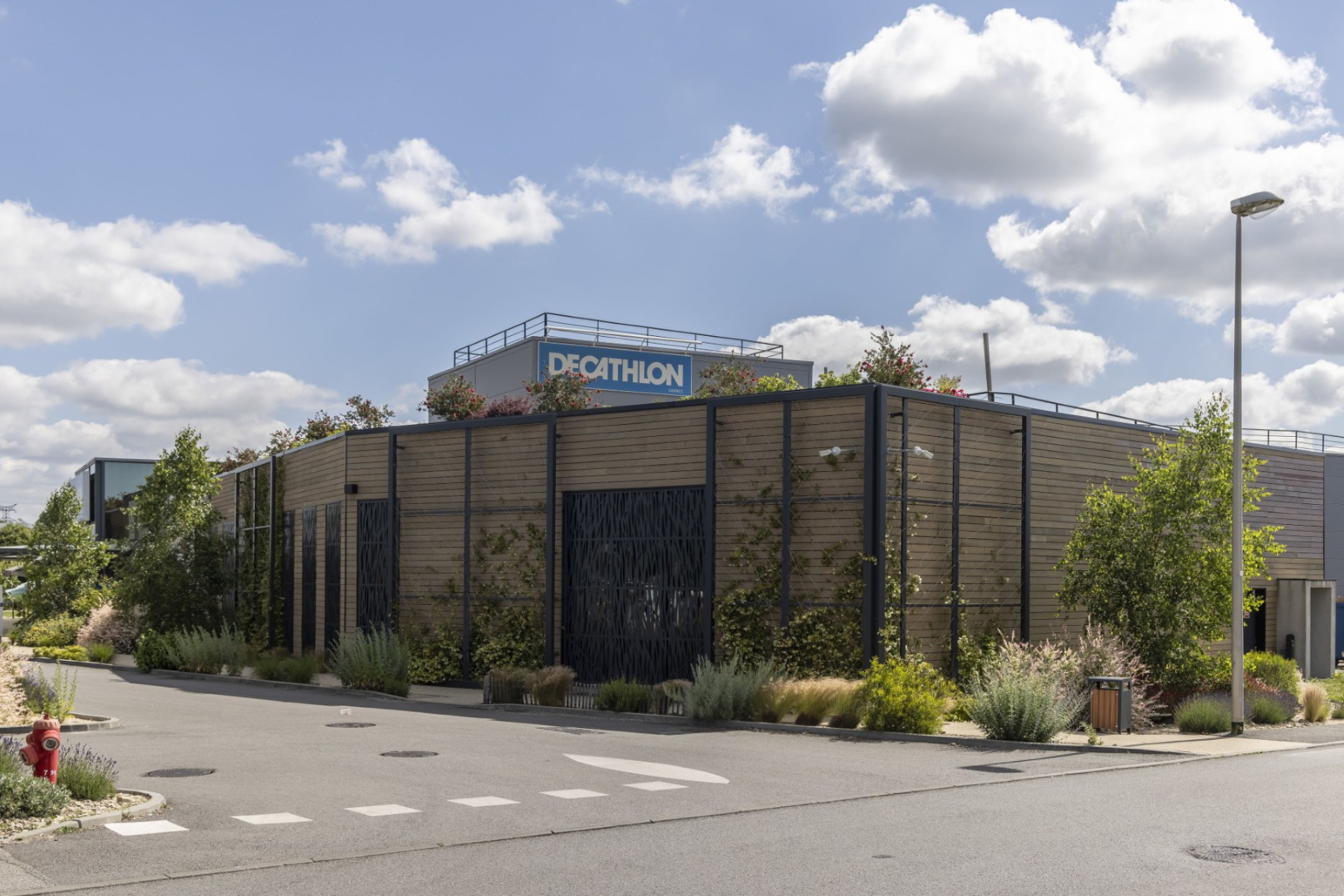 En transformant son parking, Decathlon Vannes a créé un véritable îlot de fraîcheur. Arbres et plantes grimpantes sur la façade du parvis témoignent de son engagement pour réduire la chaleur urbaine et rendre vos visites plus agréables.