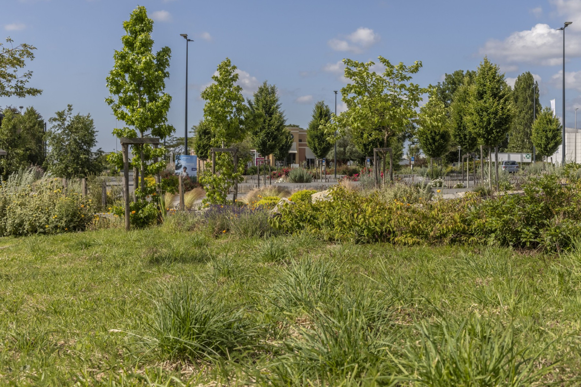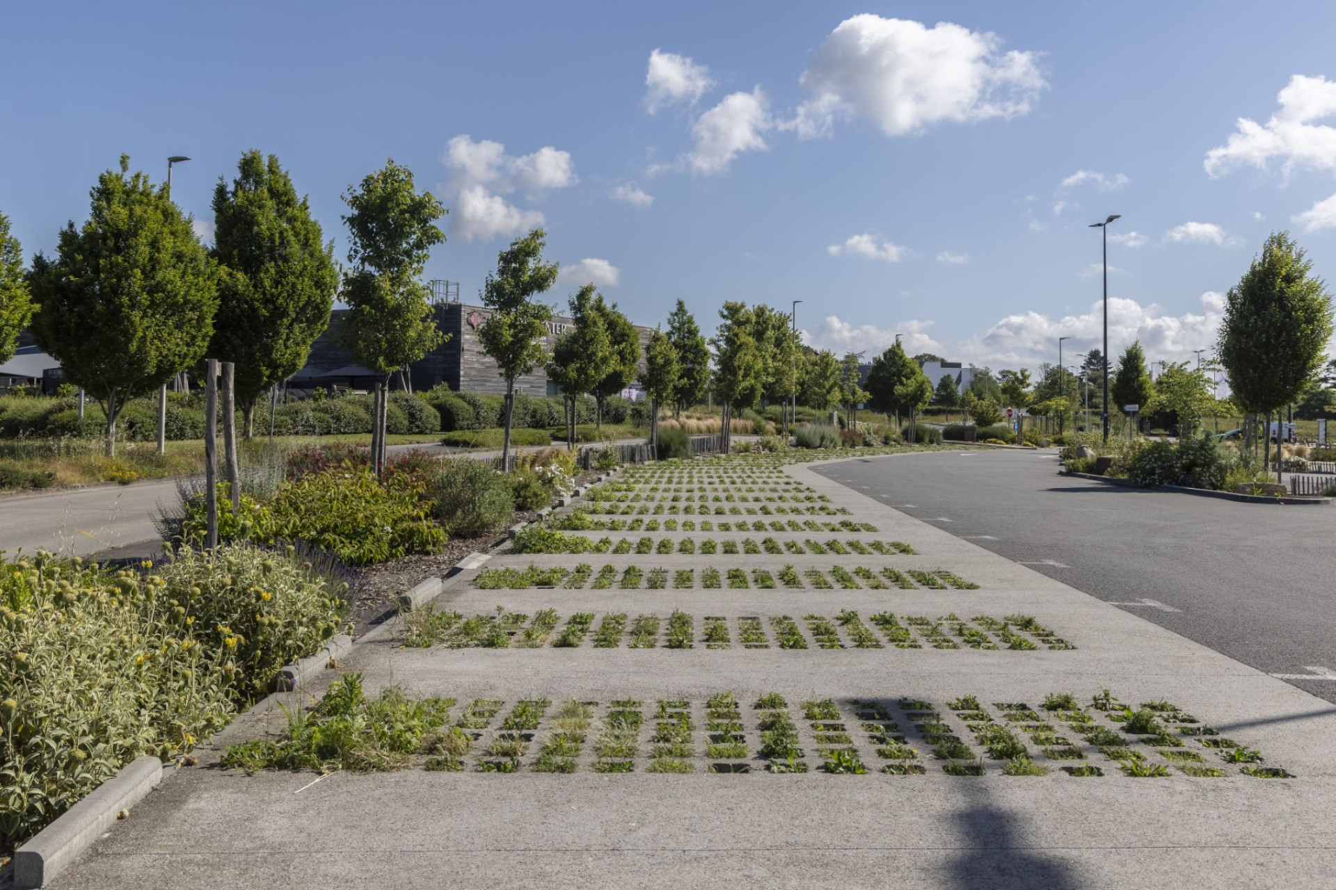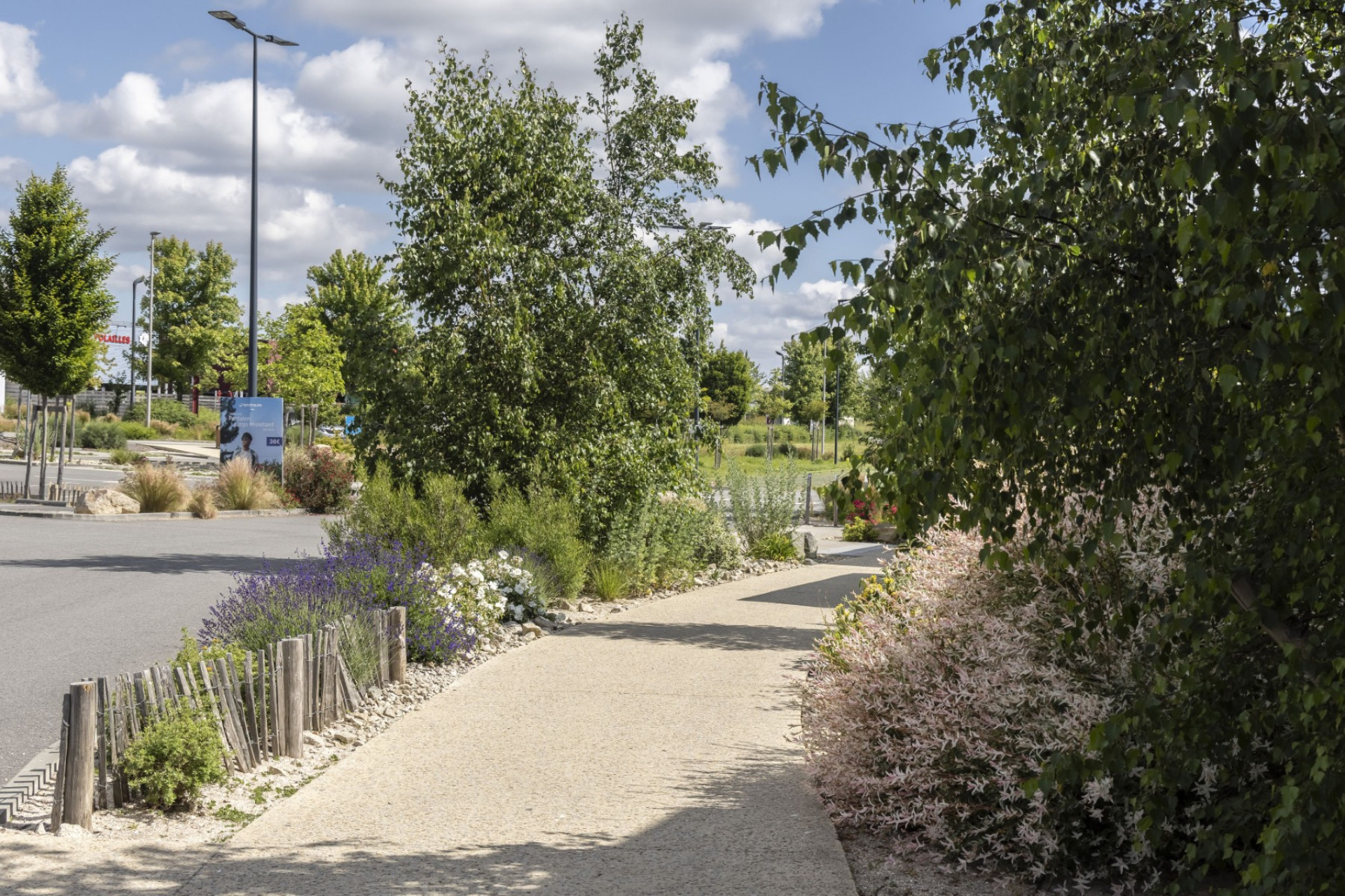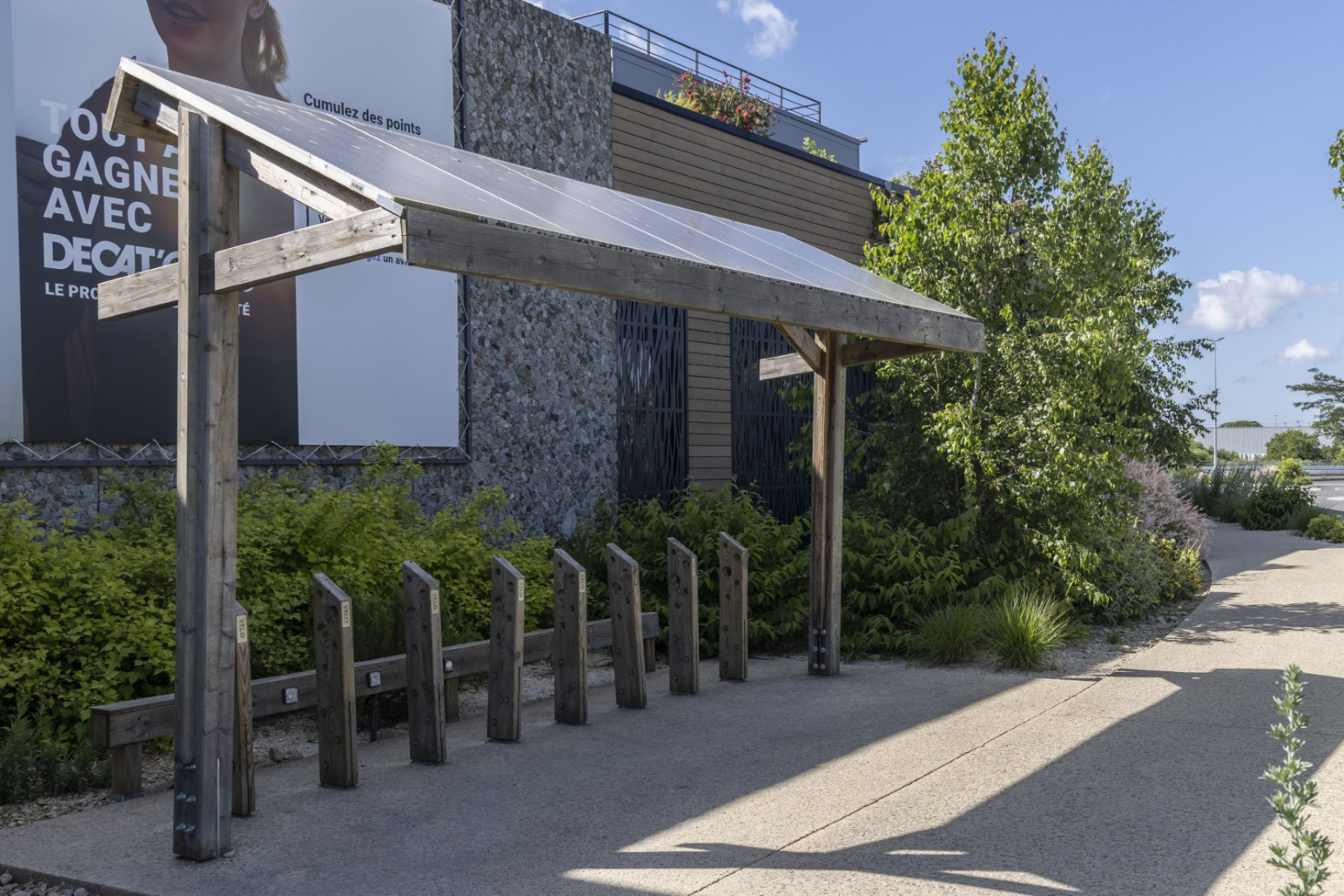 En transformant son parking, Decathlon Vannes a créé un véritable îlot de fraîcheur. Arbres et plantes grimpantes sur la façade du parvis témoignent de son engagement pour réduire la chaleur urbaine et rendre vos visites plus agréables.
